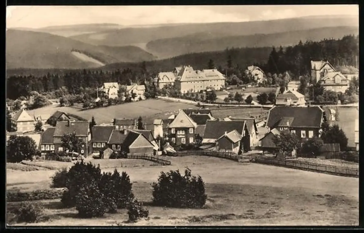 AK Masserberg /Thür. Wald, Ortsansicht mit Kurhaus und Kirche