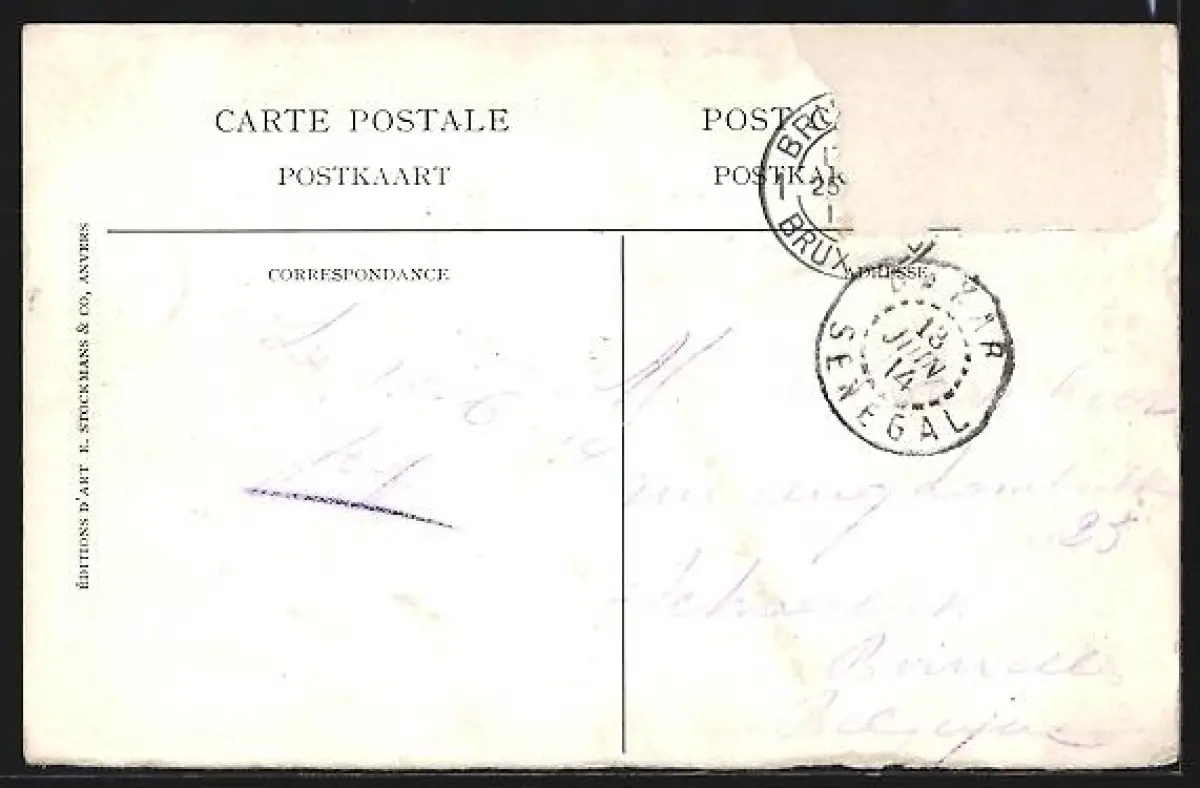 alte Ansichtskarte, gelaufen 1914, Briefmarke entfernt, rückseitig Oberflächenschaden, guter Zustand