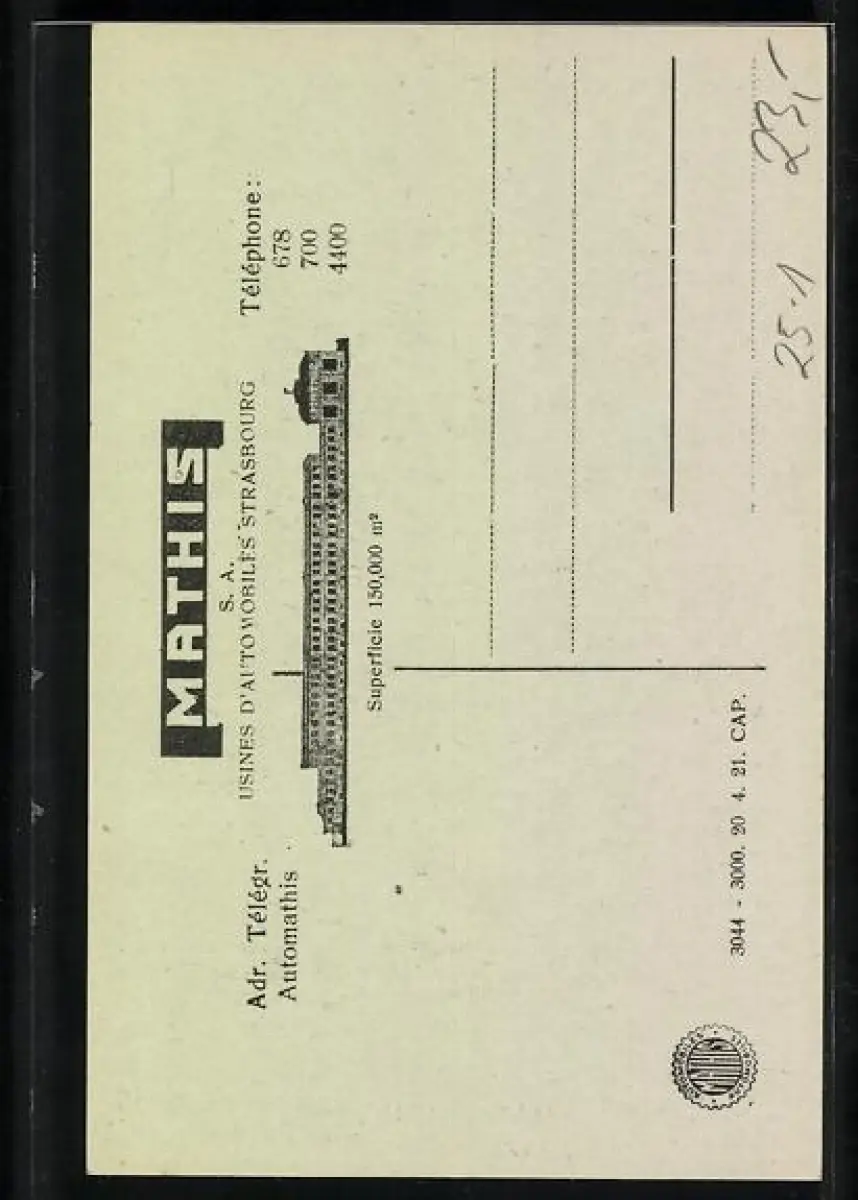 AK Mathis 10 HP, Frühes Automobil von oben gesehen