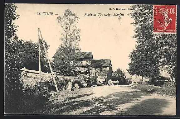 AK Matour /Saone-et-Loire, Route de Trambly, Moulin