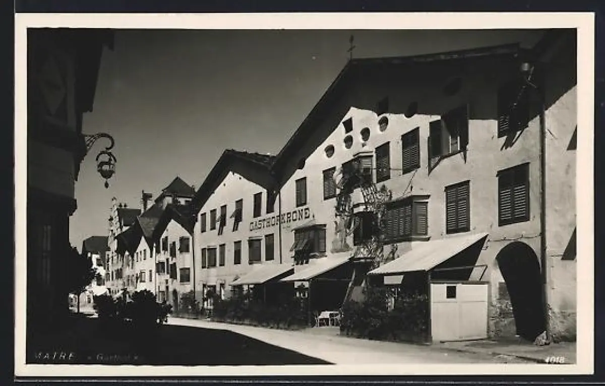 AK Matrei, Gasthof Krone mit Strassenpartie im Sonnenschein