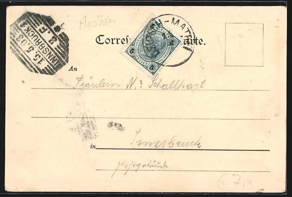 gelaufen 1903, Eckknick unten li., Stempelspur, guter Zustand