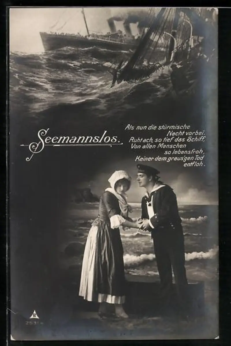 AK Matrose mit Mützenband Berlin nimmt Abschied von seiner Liebsten, Gedicht Seemannslos
