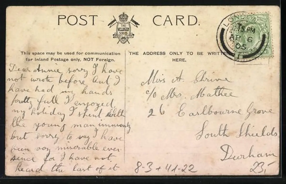 alte Ansichtskarte, gelaufen 1905, Eckknick li. oben, guter Zustand
