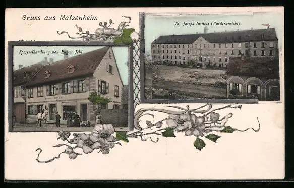 AK Matzenheim, Spezereihandlung Jehl, St. Joseph-Institut