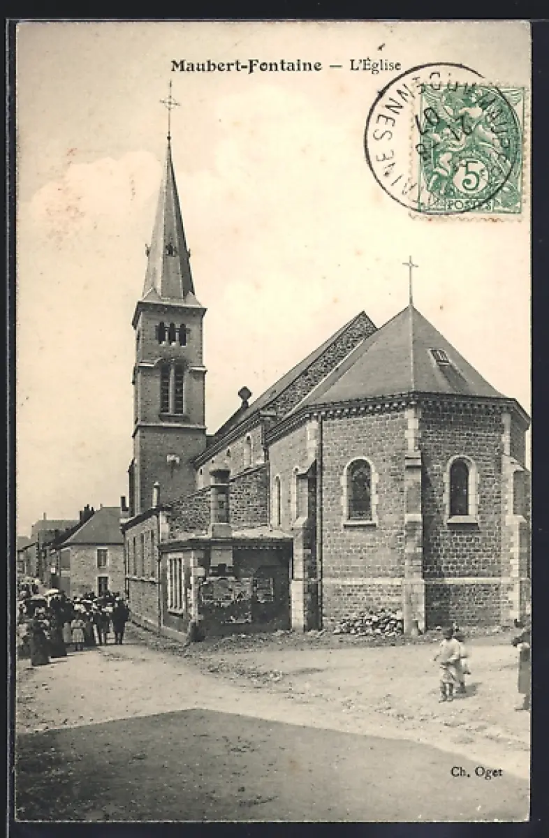 AK Maubert-Fontaine, L`Église et scène de rue animée