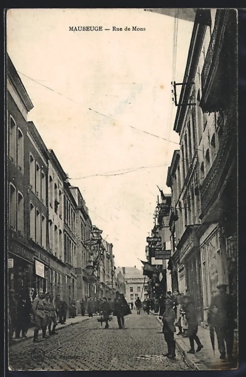 AK Maubeuge, Rue de Mons animée avec passants et commerces