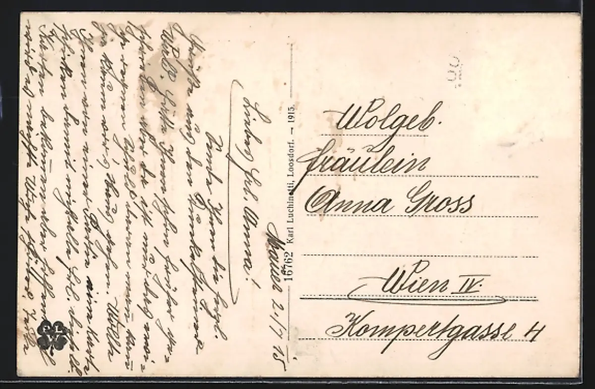 gelaufen 1915, Abriebspur re. unten, Briefmarke entfernt, guter Zustand