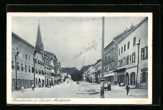AK Mauerkirchen, Marktplatz mit Häuserzeilen und Kirchturm