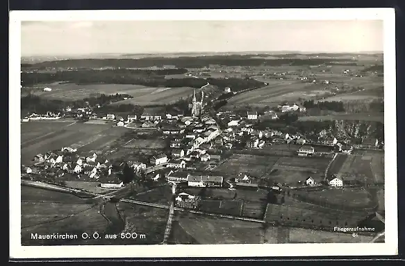 AK Mauerkirchen, Ortsansicht vom Flieger aus