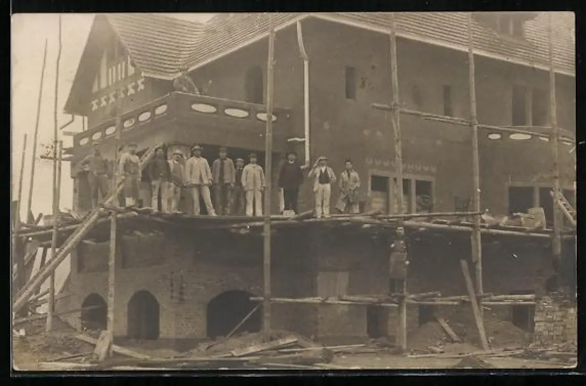 AK Maurer auf einem Baugerüst, Handwerk
