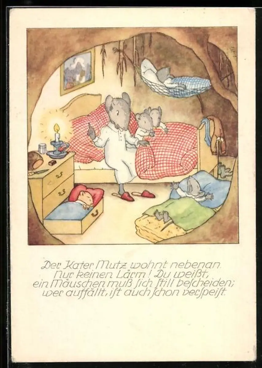 AK Maus warnt Mäusekinder vor dem Kater Mutz