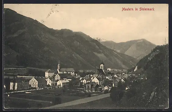AK Mautern in Steiermark, Ortsansicht von einen Berg aus