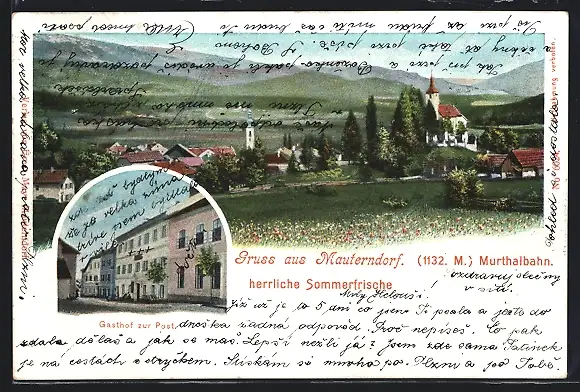 AK Mauterndorf, Gasthof zur Post, Ortsansicht aus der Vogelschau
