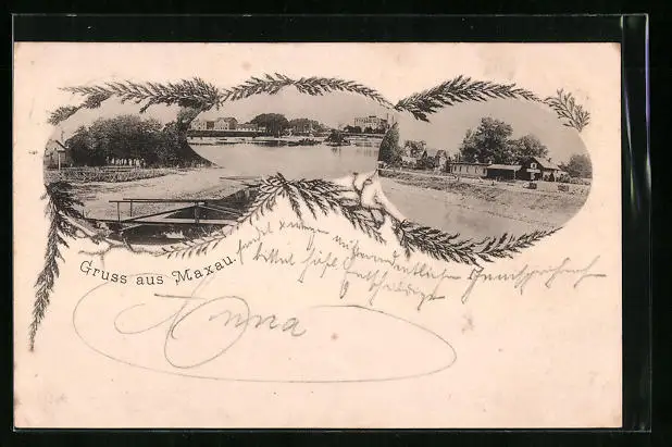 AK Maxau, Partie am Wasser und Wohnhäuser