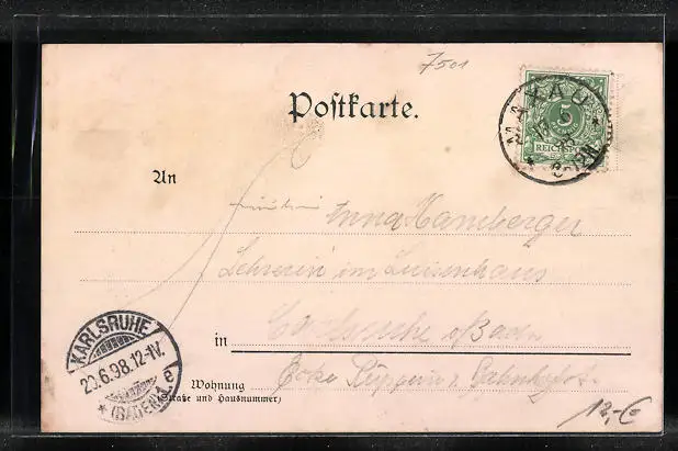 alte Ansichtskarte, gelaufen 1898, Eckknick li. unten, guter Zustand