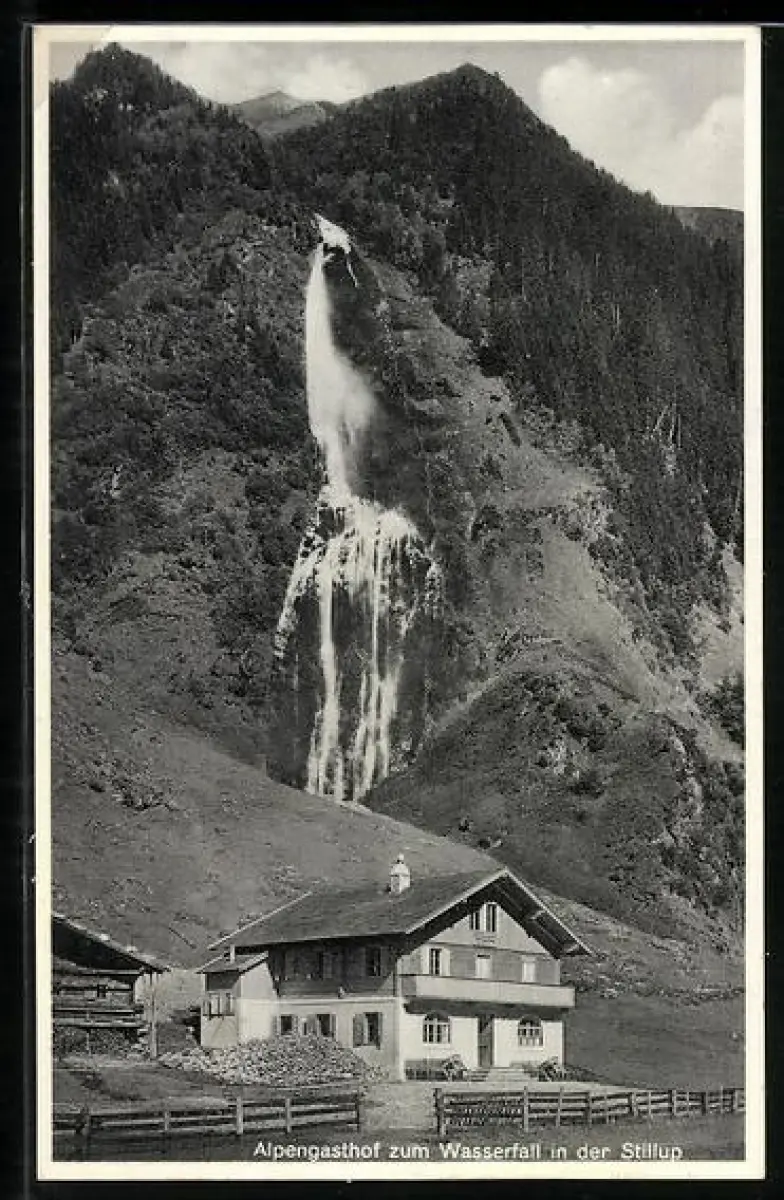 AK Mayrhofen /Tirol, Alpengasthof zum Wasserfall im Stilluptal