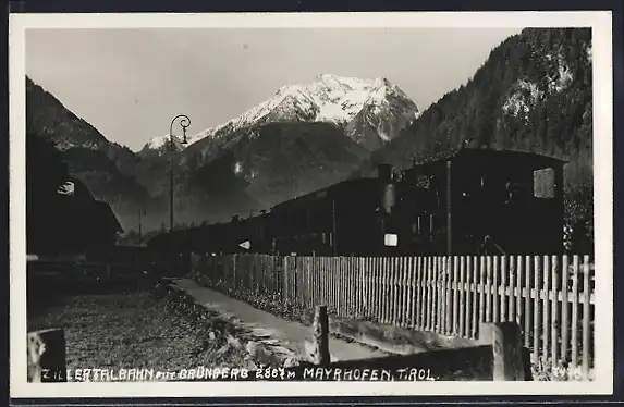 AK Mayrhofen /Tirol, Zillertalbahn mit Grünberg