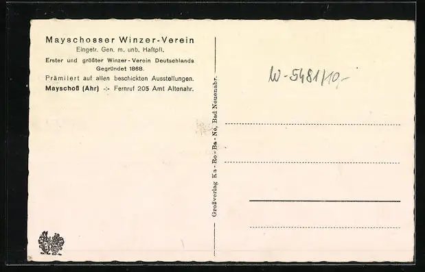 AK Mayschoss /Ahr, Winzer-Verein, Erster und ältester Winzerverein Deutschlands