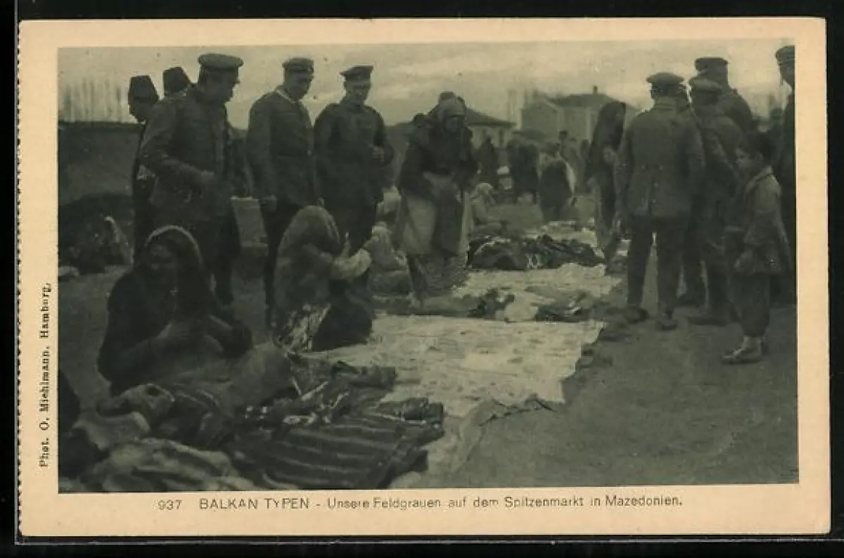 AK Mazedonien, Balkan Typen, Unsere Feldgrauen a. d. Spitzenmarkt