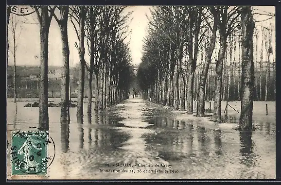 AK Meaux, Chemin de Crégy, Inondation des 25, 26 et 27 Janvier 1910