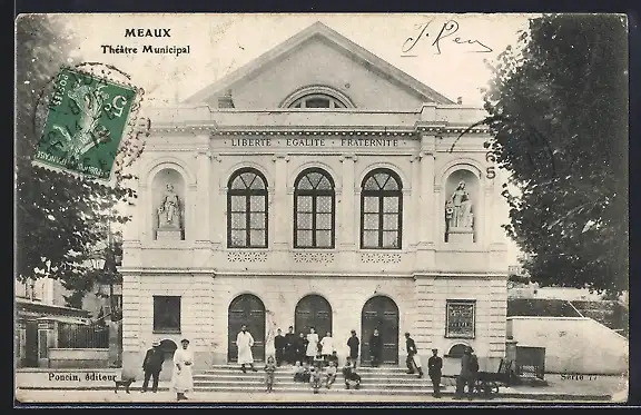 AK Meaux, Théâtre Municipal avec passants devant le bâtiment