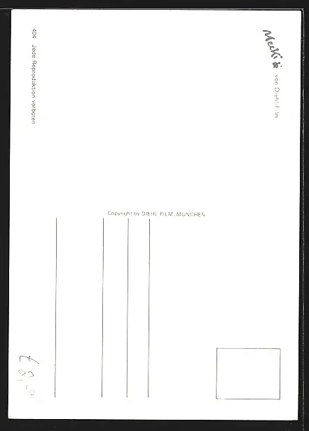 Personenbezogene Daten auf der Rückseite der Karte wurden durch blauen Textmarker unkenntlich gemacht. Die blauen Stellen sind auf die Vorderseite durchgeweicht und wirken sich negativ auf das Postkartenfoto aus