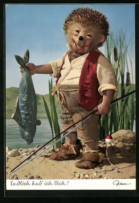 AK Mecki beim Angeln und präsentiert seinen Fang