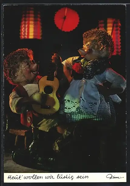 AK Mecki mit Gitarre, Frau beim Tanz-Heut` wollen wir lustig sein