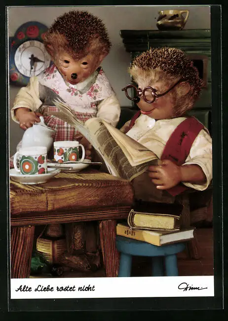 AK Mecki sitzt lesend am Frühstückstisch