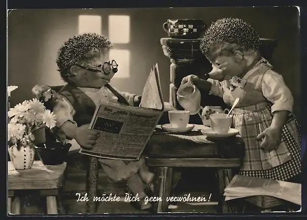 AK Mecki und Micki am Frühstückstisch, Ich möchte Dich gern verwöhnen!