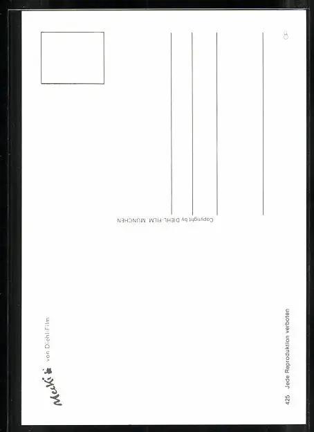 Personenbezogene Daten auf der Rückseite der Karte wurden durch blauen Textmarker unkenntlich gemacht. Die blauen Stellen sind auf die Vorderseite durchgeweicht und wirken sich negativ auf das Postkartenfoto aus