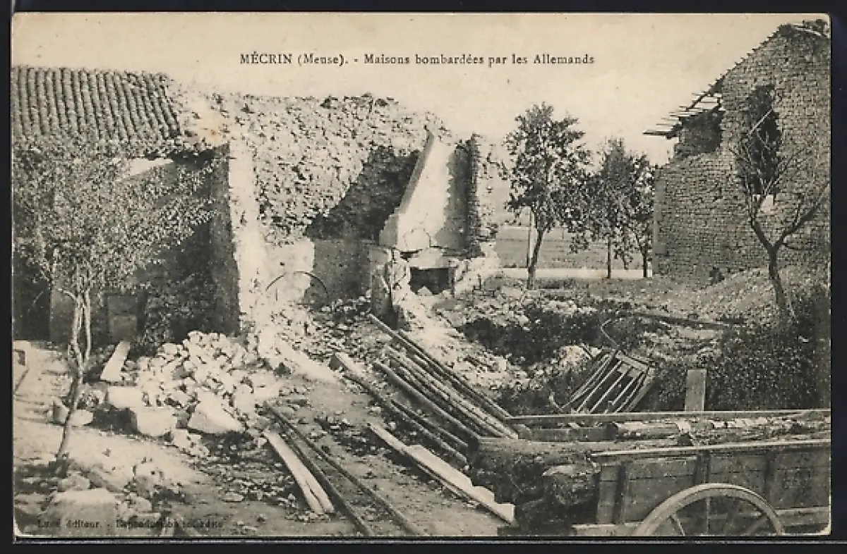 AK Mécrin /Meuse, Maisons bombardées par les Allemands