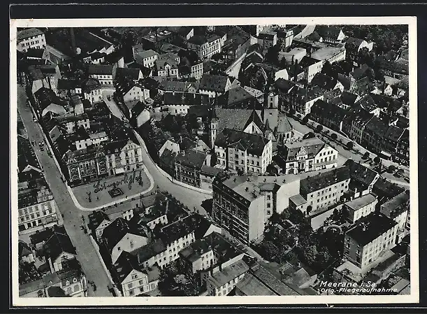 AK Meerane i. Sa., Fliegeraufnahme des Ortskerns