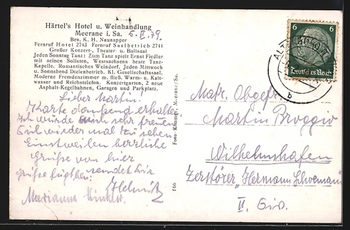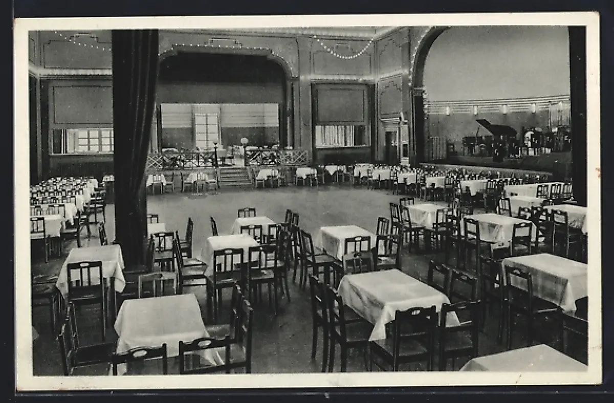 AK Meerane i. Sa., Härtel`s Hotel, Bes. K. H. Naunapper, Ansicht vom Speisesaal