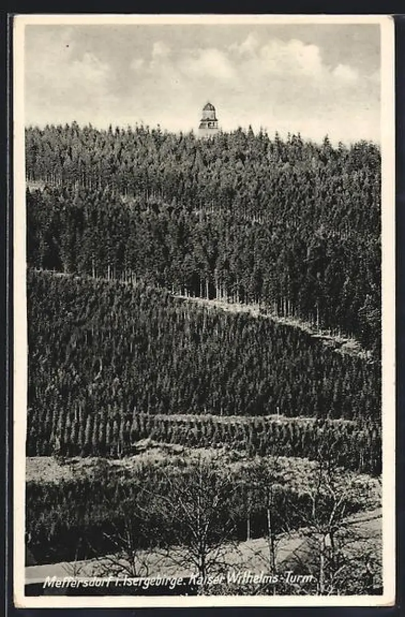 AK Meffersdorf i. Isergebirge, Kaiser Wilhelm-Turm mit Umgebung