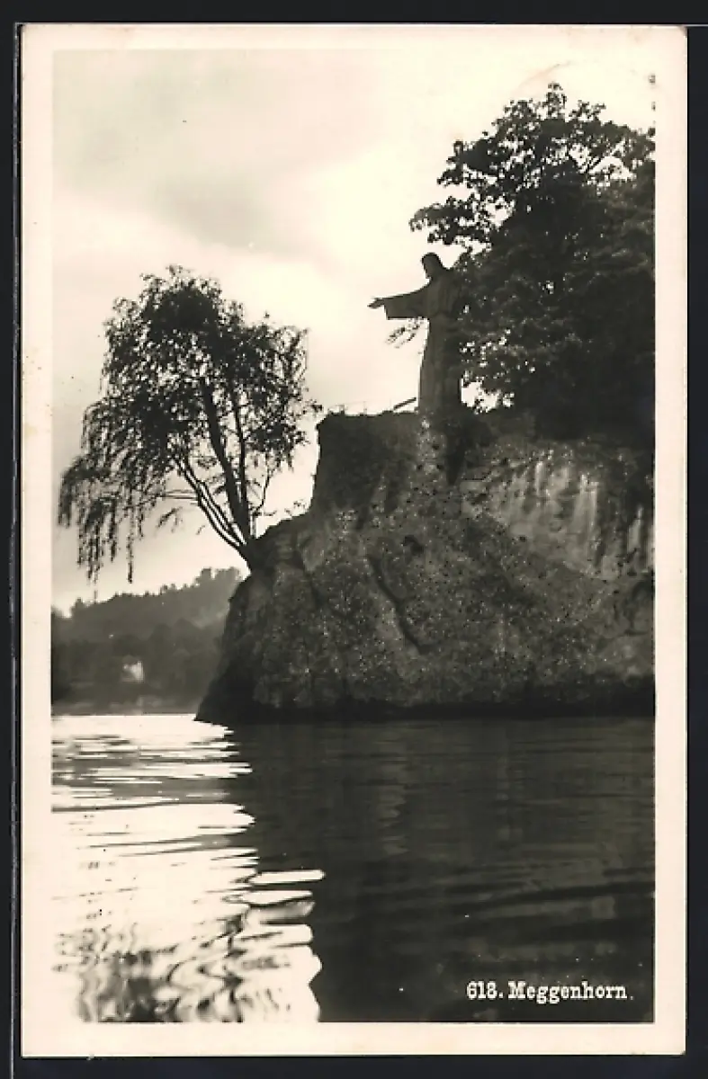 AK Meggenhorn, Uferpartie mit Jesusstatue