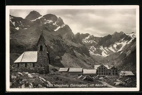 AK Megglisalp, Ortspartie mit Kirche und Altmann