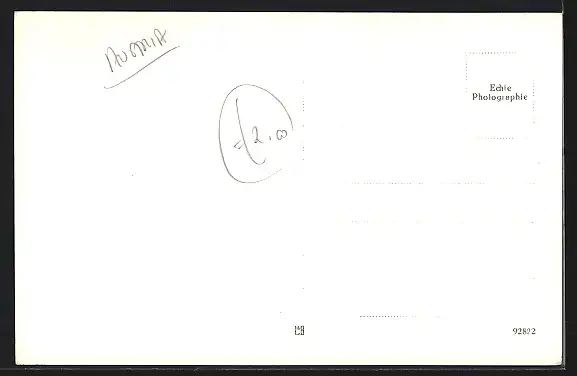Personenbezogene Daten auf der Rückseite der Karte wurden durch blauen Textmarker unkenntlich gemacht. Die blauen Stellen sind auf die Vorderseite durchgeweicht und wirken sich negativ auf das Postkartenfoto aus
