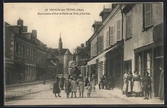 AK Mehun-sur-Yèvre, Rue Jeanne d`Arc et Porte de Ville (côté Est)