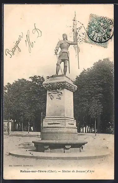 AK Mehun-sur-Yèvre, Statue de Jeanne d`Arc