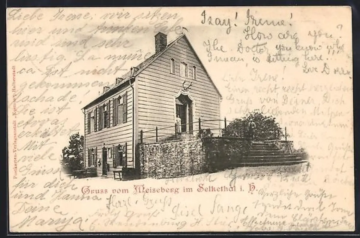 AK Meiseberg im Selkethal, Gasthof mit Hirschgeweih über dem Eingang
