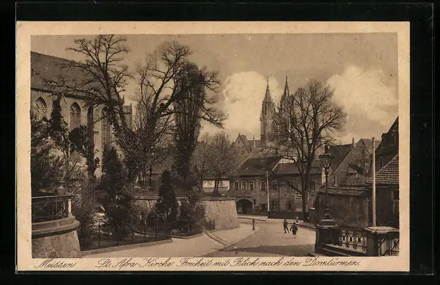AK Meissen, Kirche mit Blick auf die Domtürme