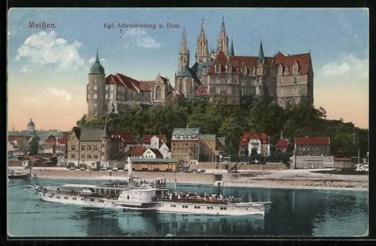 AK Meissen, Raddampfer Bodenbach auf der Elbe vor der Königlichen Albrechtsburg