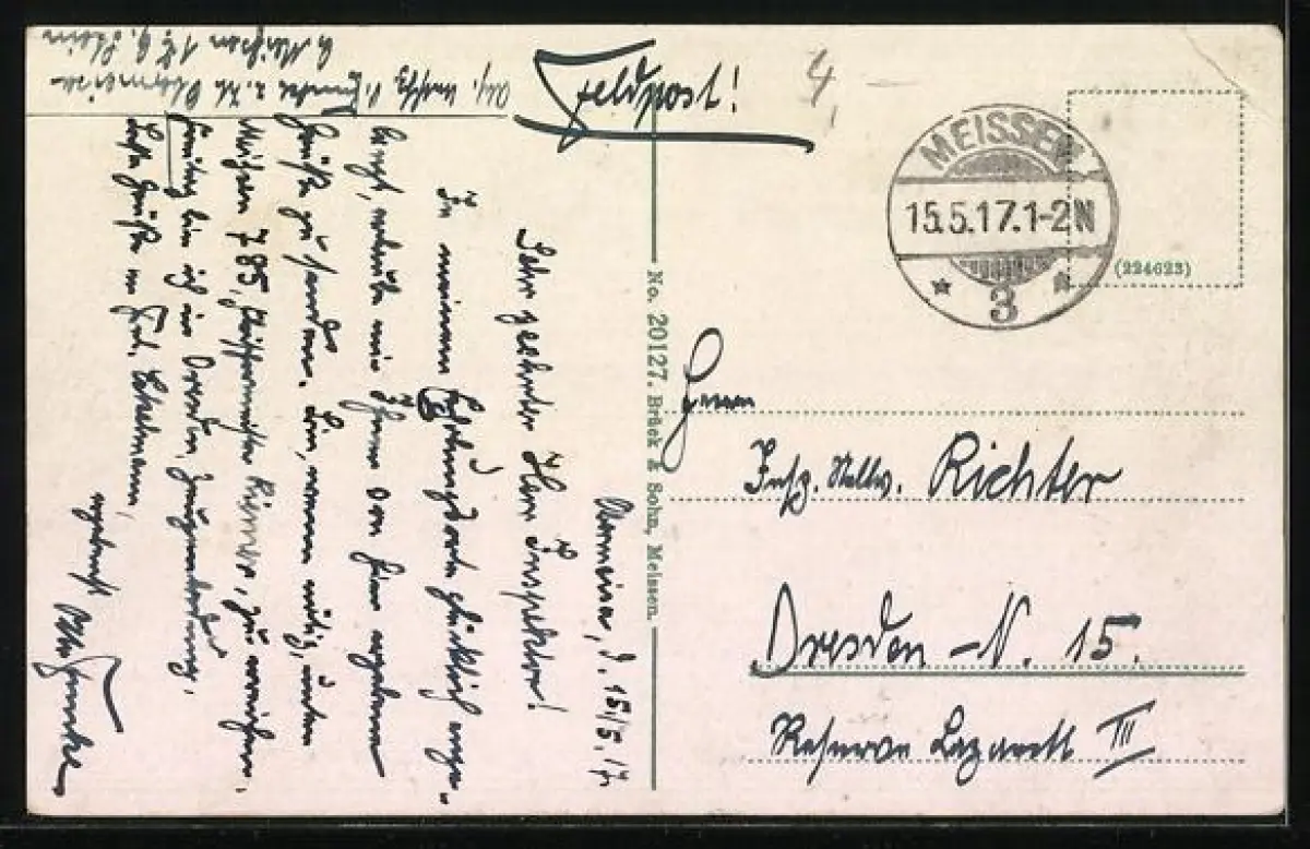 alte Ansichtskarte, gelaufen 1917 als Feldpost, Eckknick links oben, guter Zustand
