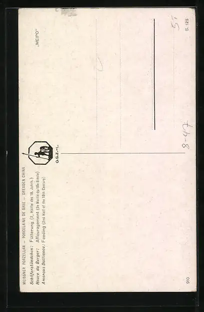 AK Meissner Porzellan: Schäferstündchen, Fütterung, 2. Hälfte d. 18. Jahrh.