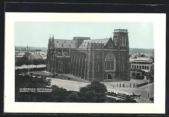 AK Melbourne, Eastern Hill, St. Patrick's Cathedral, Strassenbahn