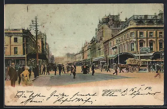 AK Melbourne, Strassenpartie mit Royal Mall Hotel