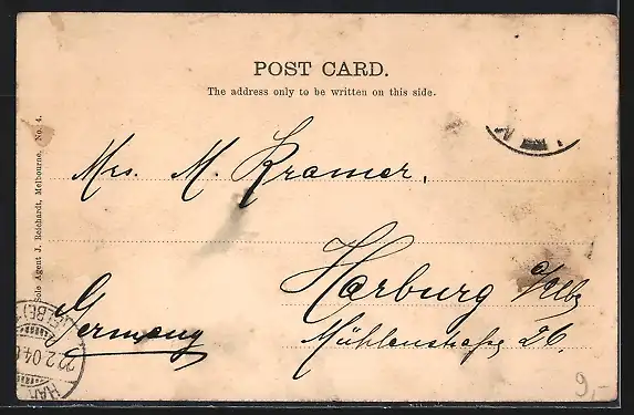 gelaufen 1904, Briefmarke entfernt, guter Zustand