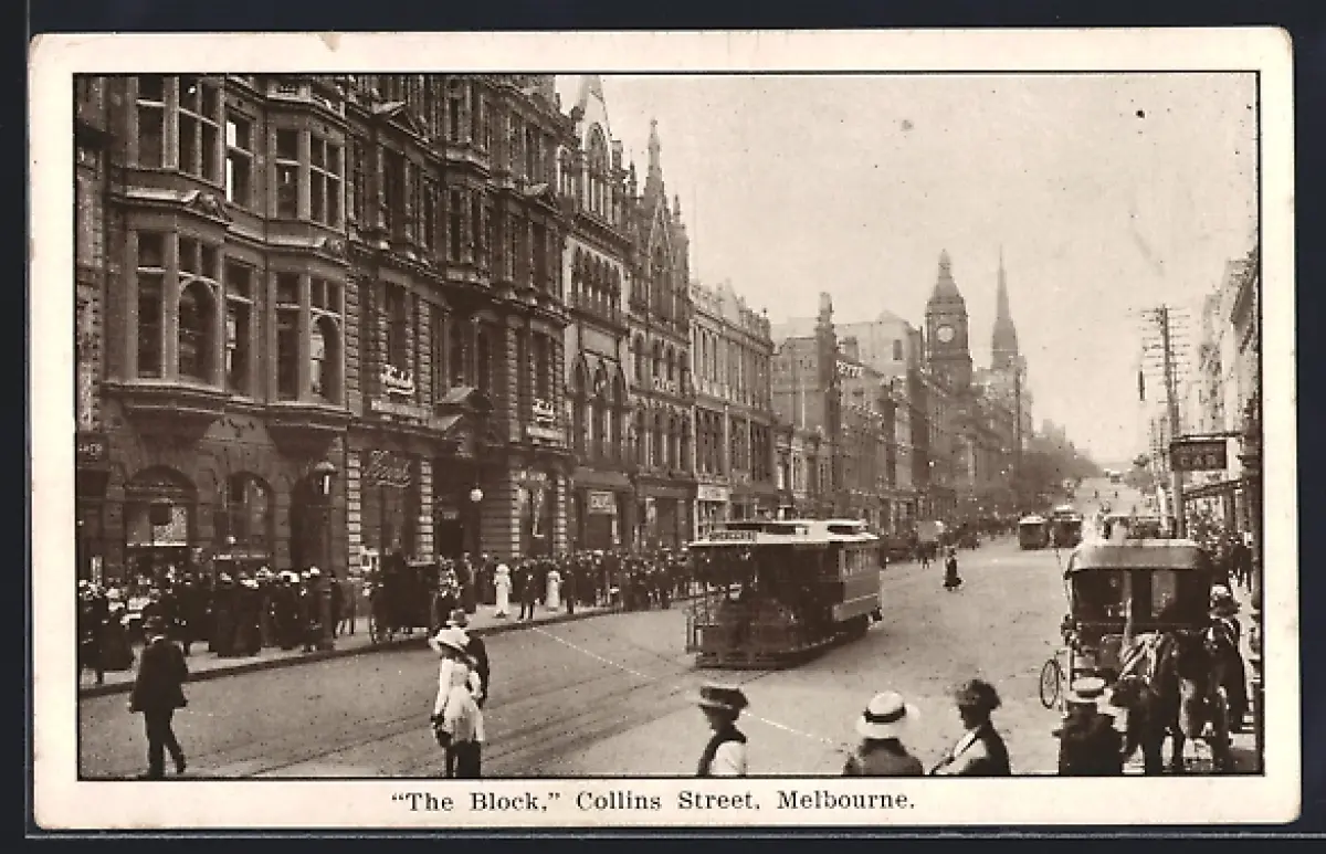 AK Melbourne, The Block, Collins Street, Strassenbahn